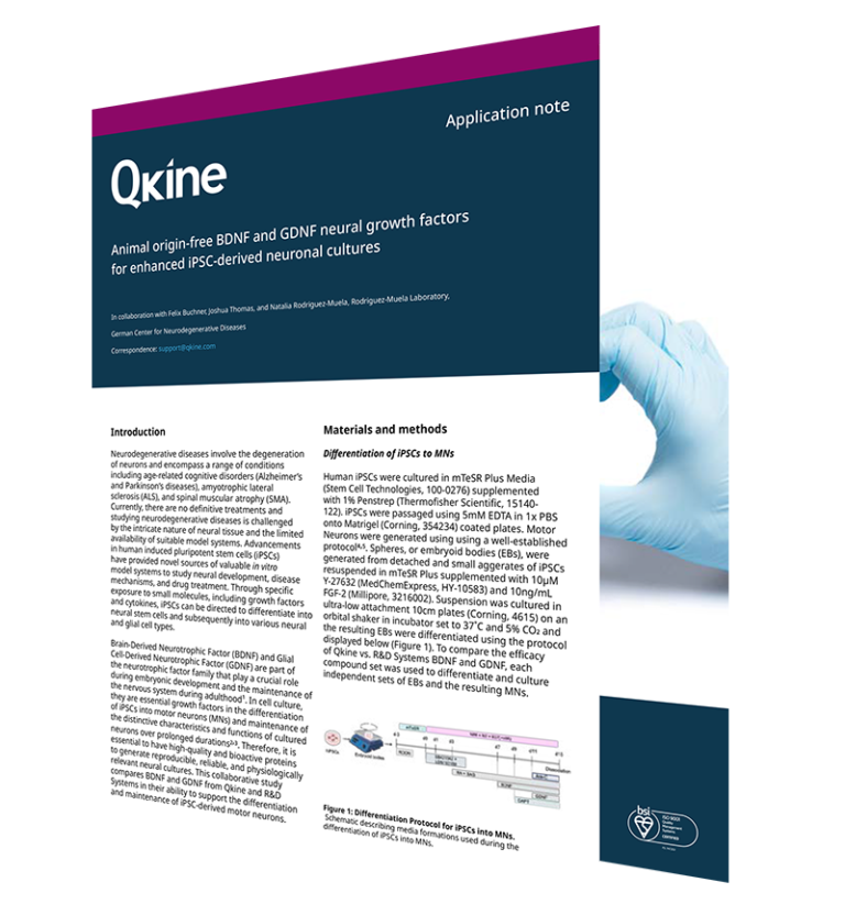 It is essential to use high-quality and biologically active recombinant proteins to maintain the neural phenotype of iNeurons. This application note reports on the use of high purity, animal origin-free BDNF (Qk050) for the maintenance of iNeurons.