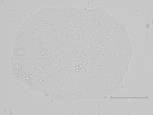 Imaging of iPSC colonies grown on Qkine vitronectin coated plates in E8-like media retained their highly preserved morphological appearance. (A) after initial seeding and 3 days in culture; (B) After 1 passage and 7 days in culture; (C) After 3 passages and 14 days in culture (scale bar = 150 µm). 6-well plates were coated with 5 µg/ml Qk120 vitronectin protein lot #204660.